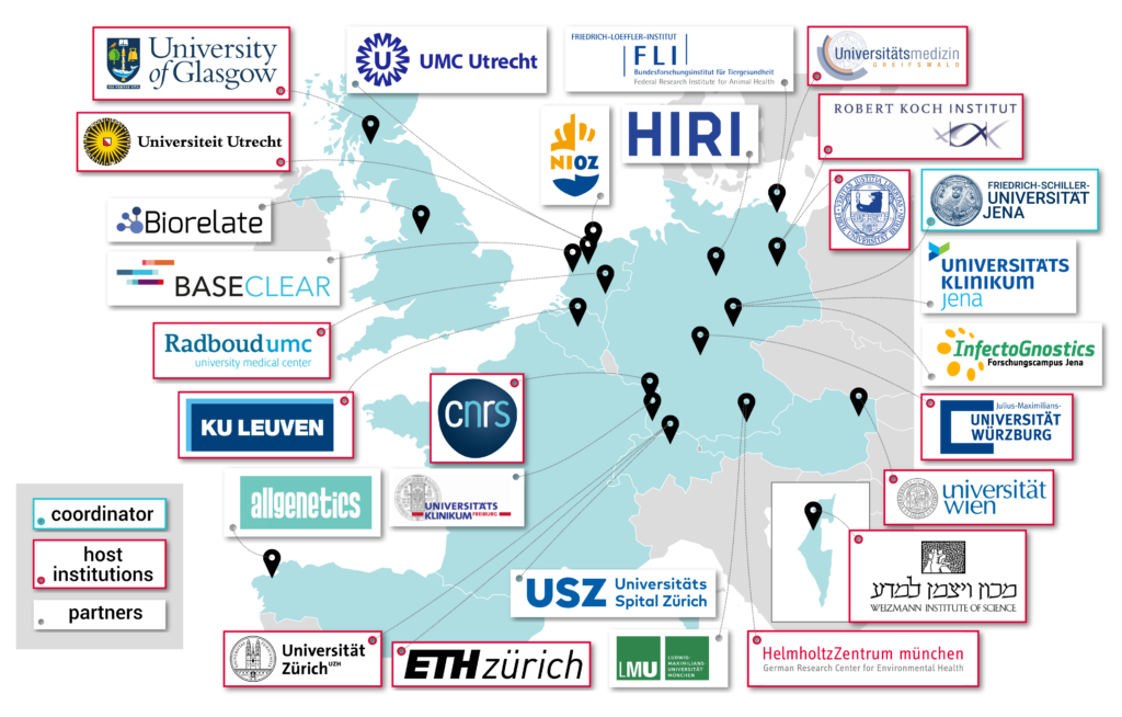 The objective of VIROINF is to train Early Stage Researchers (ESRs) in all aspects of infectious outbreaks. The consortium consists of 27 high profile universities, research institutions and companies. Coordination is at the Friedrich Schiller University Jena, Germany. The host institutions and partners are located in Austria, Belgium, France, Germany, Israel, the Netherlands, Spain, Switzerland and the United Kingdom.